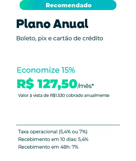 A primeira parcela do boleto vence 30 dias corridos após a assinatura do contrato.